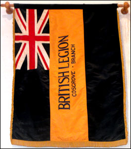 The British Legion Banner hangs on the West Wall near the War Memorial plaques.