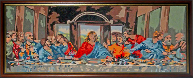 Each panel depicts an artefact in the Church and was designed and made by a different person, using different techniques.