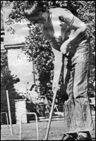 The gun was made for a Walt Disney film and these are just a few of the children and adults who tried their hand at shooting tennis balls at tin targets. But the cannons had to be “doctored”. When Eric first tried out the bazooka he could fire tennis balls straight through a sheet of plywood at 30 yards.