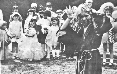 A young "witch", Juliette Bidgood, in the forefront during the parade of the children's fancy dress.