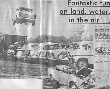 Amateur stuntman Tom Williams said an attempt was made to sabotage his car during the two day carnival at Cosgrove Lodge Park. The 30 year old lorry driver from Deanshanger hurtled up a ramp on Saturday and cleared a line of nine wrecked cars in an old Hillman Super Minx. But on Saturday the stunt went wrong and he crashed down on the seventh.