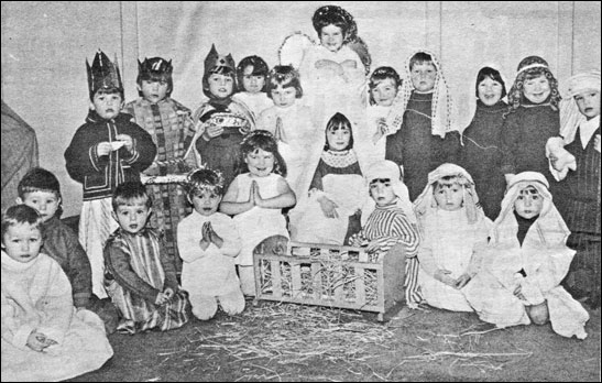 COSGROVE Playgroup presented its Christmas tableau - above - to mothers in the Victory Hall on Tuesday last week. The 20 children, all under five, were dressed as shepherds, the three wise men, and Mary and Joseph, with children watching the scene, to represent the Christmas story. They sang the first verse of “Away in a Manger” and were joined by mothers for the next two verses.