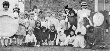 The fete raised £120 which was divided between the school and the church funds. Village school children paraded through the village and then opened the fete with an entertainment entitled "Time". Roade Secondary School Band provided a musical background to the exhibition of children's competitions sideshows and stalls.