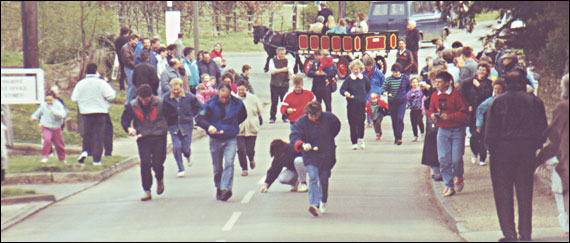 By 1995 an attic auction by Tony Bracey was bringing in almost as many people as the Egg Race itself, the winners of which were, in that year,