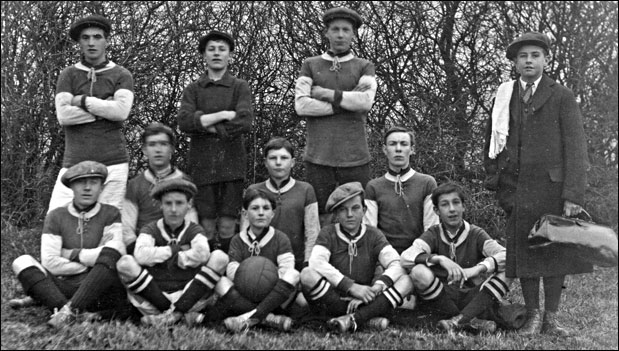 Front row: G. Jelley, W. Stones, W? Pratt, F. Childs, R. Brown, (Trainer) S. Lord