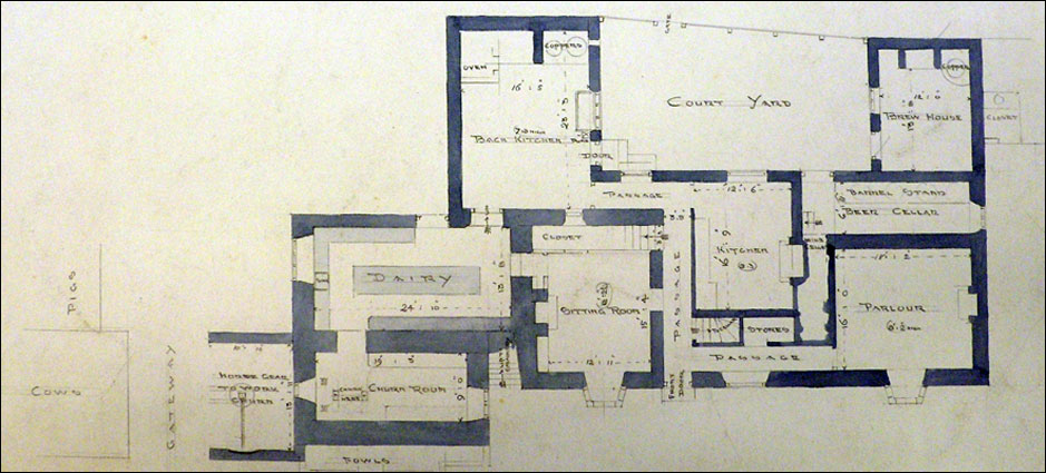 By comparing the position of doors, windows and chimneys we can identify the larger building above with the plans for the old Manor House.
