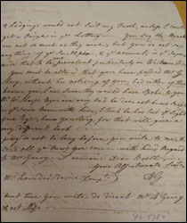 The letter below, only partially complete, is not dated, but is from the period between when Miss Gavey left the Priory at Cosgrove in 1817 and when she took up her final accommodation at Stony Stratford.