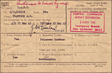 Pass: Authorised to travel by rail 22 May 1945