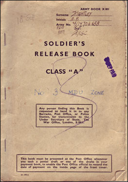 He joined the Royal Army Service Corp in February 1944, where he reached the rank of Sergeant. A posting document read “In order to further the efficiency of the army in any future emergency, you will be transferred to the Intelligence Corps”. He also said he saw the first “doodlebug” hit London whilst he was on fire watch from a building in Whitehall. Two of his other brothers were also called up to the services.