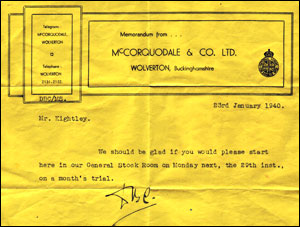 On 29th January 1940, Albert started work at McCorquodale & Co at Wolverton in the Post Office and Stock Room. Every day he would cycle to work along the A508, into Cosgrove then along the canal bank.