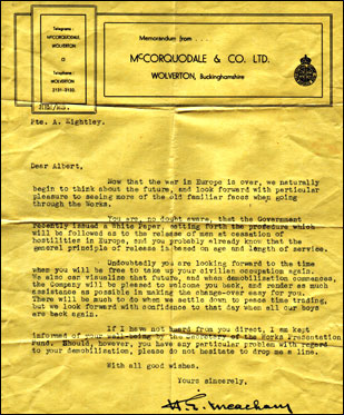 | After the war, Albert rejoined McCorquodales to complete his apprenticeship as a printer. Something that Albert was proud of was the work he produced and how he could recite jobs he done. Over the years we must have completed millions of envelopes. Albert stayed in McCorquodales until he retired in 1990. |