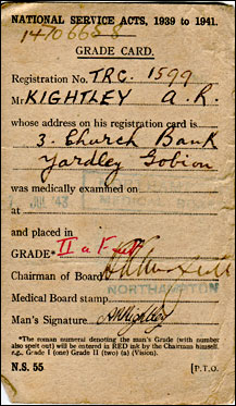 With his parents consent, Albert enrolled in D Company, 13th Northants Battallion, Home Guard , on 4th December 1941. The Pack Horse pub in Yardley Gobion was the HQ, where they learned to strip & assemble a Lewis gun, and had lectures on invasion plans - should they occur. Apparently parades always finished before the pub closed! As his elder brother Arthur was also a member of the platoon Albert was B Kightley (Bert).