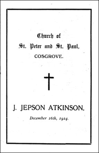 On his death, John Jepson’s obituary and funeral reports speak for themselves. He was buried in a simple grave at Cosgrove Church on December 16th 1924 aged 80 and Isabella joined him on February 4th 1930.
