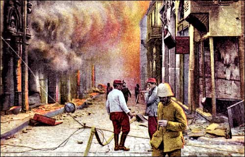 Salonika - Egnatia St. at the time of the fire during World War I