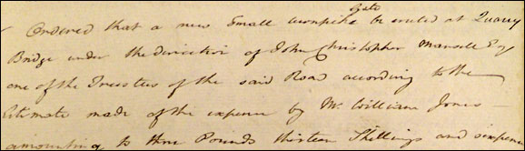 Ordered that the Treasurer do pay Wm Jones for Carpenters work at Quarry Bridge Gate £1 19s 3d