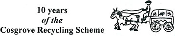 Today the Scheme thrives with immense support from the recyclers of the village of Cosgrove. During the life of the Scheme the village have recycled over 260 tonnes of materials. This can be looked upon as a very substantial reduction in the contents of the household refuse bin and is up there among the highest in the country; something that is indeed worthy of note.