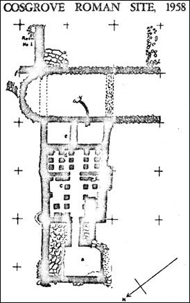 The Ministry of Works have called for a detailed publication of our work on the Cosgrove Roman Villa, due to them as custodians of a scheduled Ancient Monument. This will be prepared for inclusion in the 1959 Report of the Northampton Natural History and Field Club (Archaeological Section) So that here only a condensed commentary is necessary.