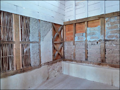In this picture we can see the way that the walls were constructed. Workmen at Wroxeter used only tools and materials available in Roman times