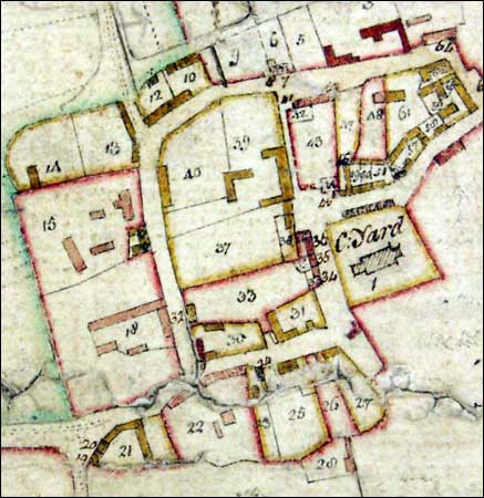 Between Jane Scott of Castlethorpe Widow and John Rainbow of the same Labourer All that cottage in formally in the occupation of William Newbury afterwards William Elliott since William Gregory or his under tenants and now of John Rainbow with a barn yard thereof which is now standing and still remaining situate and being in Castlethorpe aforesaid together with the ground and wall whereas certain other part of the said messuage or tenement was formally erected and built but which hath long since fallen or been taken Lower and which said last mentioned messuage or cottage was formerly in the tenure or occupation of Robert Shrieve afterwards of Philip Osborne since Thomas Gostelow Junior or his under tenants and now Richard Denny.