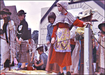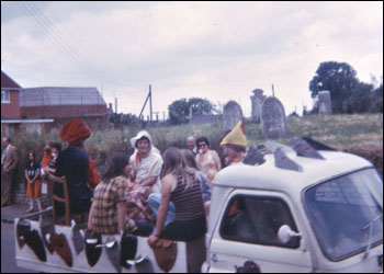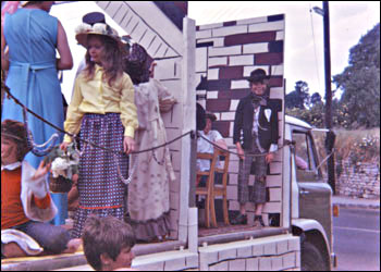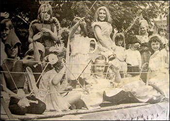 They were judged by local farmer’s wife Mrs. Rosemary Sawbridge, who opened the fete. She chose a float presented by the Castlethorpe playgroup, who picked the nursery rhyme £Sing a Song of Sixpence” as the theme. Miss Juliet Easton, a 17-year-old student of Station Rd. Castlethorpe, was chosen as Miss Castlethorpe 1975, and crowned by last year’s winner Caroline Eade.
