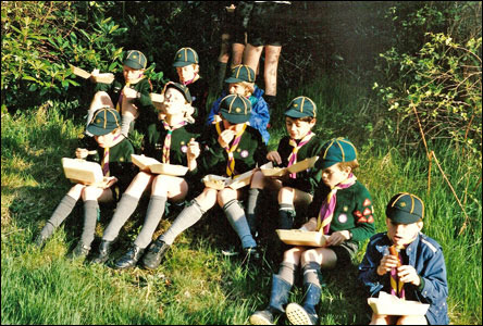 Before reaching Newbury we stopped for an exploration of Beacon Hill. Having struggled up the Hill and watched the model aircraft, Baloo explained to the Cub Scouts the reason for the Ordnance Survey’s Triangular Stone. We then played a Wide Game based on stalking, last played by the Pack on the Wrekin in Shropshire in 1985. We arrived back at the H.Q. at 7.30pm. to the surprised and waiting Parents, surprised well we actually returned on time.