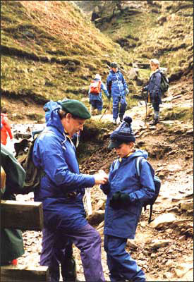 Having parked in Edale we decided to eat our packed lunches in the vehicles because of the rain. Ensuring the party were adequately attired for walking we set off to climb Nab Hill near the start of the Pennine Way long distance footpath. Although the rain had stopped a few of the Cub Scouts found the going strenuous so we decided to walk the start of the Pennine Way along a valley. This walk amongst magnificent scenery prompted Kaa to say that he will attempt the whole 250 miles if he is given a 3 month holiday from work.