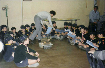 The Pack received their guests for 7.30p.m., taking their coats and escorting them to their seats. Mr. Hill from Castlethorpe provided the music whilst the Cub Scouts chatted to the guests.