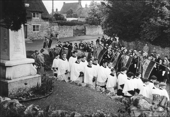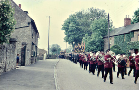 The parade of 180 ex-Service men and members of the Women’s Section of the British Legion marched through the village, headed by the Bradwell Silver Band, to the war memorial and garden of remembrance.