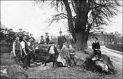 Some years ago lightning partially destroyed one them, and few years later during a heavy gale, one was blown down. This unfortunate occurrence gave rise to the feeling by a few that the remainder were longer safe. The Parish Council took the matter in hand, and the Lord the Manor (Mr. E. H. Watts), to whom these belong, with view having them removed or properly lopped. The latter consented to do, and had the work put in hand forthwith, but for some reason (possibly a misunderstanding on the part someone) the trees, instead being properly lopped, were really mutilated, until there was very little besides the lower portion of the trunks left.