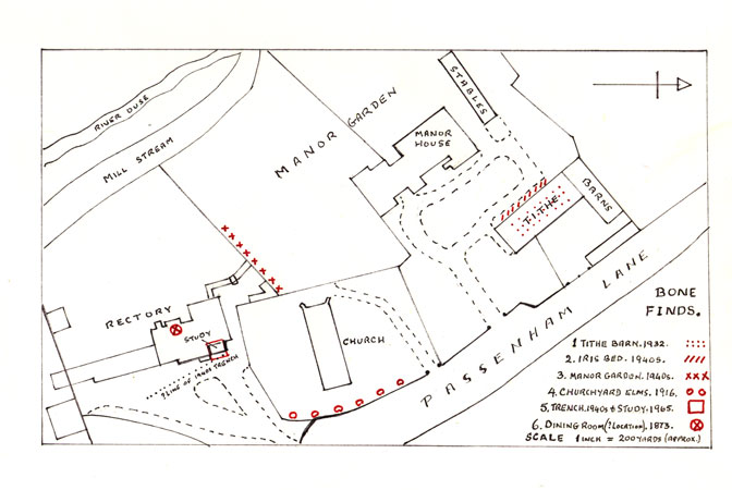 Evidence of occupation has been found at Passenham. Discoveries of human bones uncovered around the village was often talked of in local lore, the first recorded excavation took place in 1873 in the Old Rectory. A 1965 excavation, again in the Old Rectory but by this date empty and fallen into disrepair, uncovered around 400 skeletons believed to date to 921, although this remains unproven. The skeletons have been attributed as a possible Saxon war cemetery. Written records show that an army led by King Edward the Elder (King Alfred's son) encamped at Passenham. From here Edward raided the Danes across the border particularly at Towcester and Bedford, but many cross-border skirmishes occurred during this unsettled period. Puxley is known to have been laid to waste on at least one occasion.