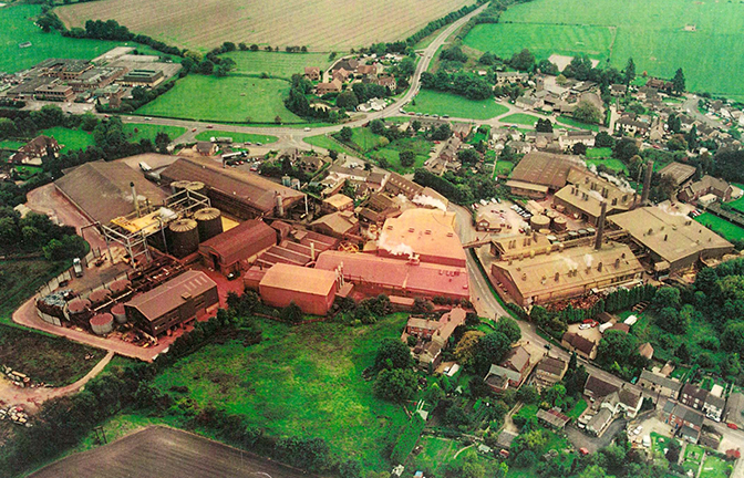 The factory had a history of owners and different names throughout its life. ‘The Deanshanger Oxide Works Ltd’ owned by Abraham Wreschner’s sons, Hans and Kurt, joined forces with Shell owned Billitons in 1979 and renamed the company ‘Deanox’ in 1981. Harrison and Crosfield took over the company in 1982 and branded it as ‘Harcros’ which was again rebranded in 1998 as ‘Elementis’.