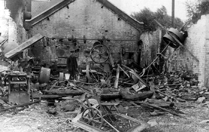 Both Brigades stopped the flames reaching fuel tanks but the foundry’s carpenter and wheelwright workshops were devastated, with damage estimated at £5,000.