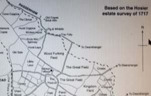 The Pig and Whistle can be found on a 1717 map (below) based on an estate survey. It was originally two cottages and located at the Wicken end of Folly Road, close to Hurst Farm. The area is often referred to as Wicken Hurst in the Census Records.