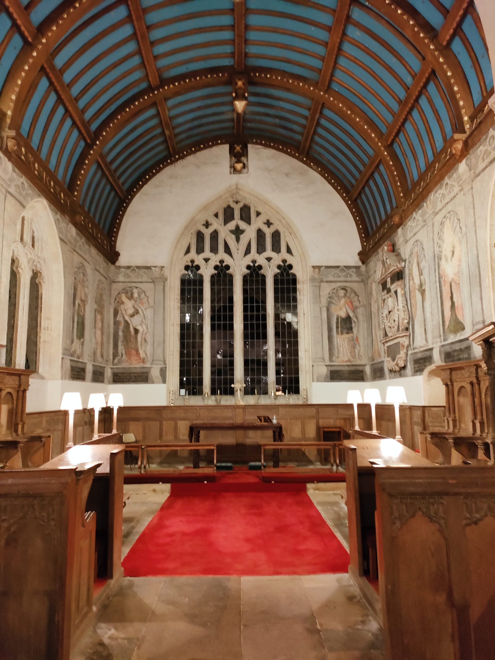 The church was closed and placed on the disused churches list after the Second World War. A campaign to reopen it began in 1951 and exterior restoration work was carried out until enough funds were raised by local people with support from the Pilgrims Trust in 1955-6 to start on the interior. During the restoration of the Gothic Chancel, stalls and the barrel-vaulted ceiling two murals of life-sized figures were discovered, said to be without precedent in England. Other figures were also eventually uncovered - all thought to be painted in 1626 -1628 as part of Sir Robert Banastre’s refurbishment works and covered up by the Puritans around the time of the English Civil War (1640s).