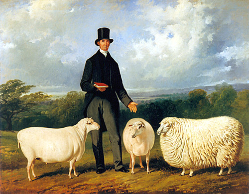 In 1857 customers and friends gave Valentine a portrait of himself and some of his flock painted by Henry Barraud, to commemorate sixty eight years of breeding from the original pure bred Bakewell, fed only with grass and root crops.