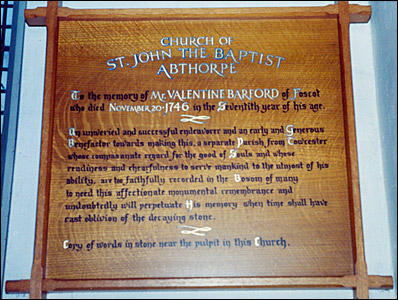 "To the Memory of Mr VALENTINE BARFORD of Foscot