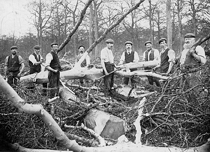Hartwell was once a thriving centre of the timber industry. Historically centred in Salcey Forest, it was natural that timber should have a prominent place in the lives of the villagers. Some of the older buildings were located in the forest itself and were probably the homes of the forest rangers. Being part of the Grafton Estate, there were also strong royal connections. Apart from routine things like tree felling, there were other tasks such as stripping the bark from the trees, or sawing the trunks in saw-pits using a two-handed saw: one man on top, the other in the pit.