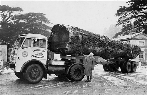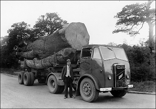 This Latil perhaps won more affection than any other vehicle in the fleet. She was at home as much on the cobbles of London Dockland as in the muddy woods and fields within a radius of forty miles of Hartwell. Over the years most of the drivers had at one time or another had a turn at her wheel. Even Mrs. Agnes Whatton, Eric’s wife, drove her when during the war Eric and Archie were at one time taking regular loads of decking up to Liverpool to be shipped to Ireland, a top priority contract, in the thick of the air raids and journeys that required a 3 a.m. start. One morning Eric was away with his lorry, but Archie had stalled, become over-choked, and was unable to start. Remembering that his sister-in-law, Agnes, could just about drive the Latil he called her out and she towed him up the road and got him going. Thus the Latil probably became the only one to be driven by a lady in carpet slippers and night attire.