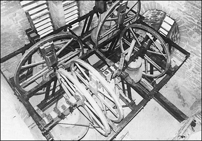 Then came the Second World War, with another blackout of news until 1949, when major restoration work began on the tower in March. By the time Easter arrived, the tower was completely enclosed by huge scaffolding. The parapet and north-west corner had to be taken down and then rebuilt. The roof timbers and lead roofing were renewed. The rebuilding of the spirette continued throught the summer. The task was completed and crowned with the new and handsome cockerel weather vane on October 2nd; the bells having already been lowered on May 20th, and dispatched to Loughborough for cleaning, tuning and quarter turning. The cockerel weighs 33lbs, is 2ft 9ins high and 2ft 9ins from breast to tail. The ball is 12ins across and the total height from the top of the stump to the spirette on the head is 6ft 6ins.
