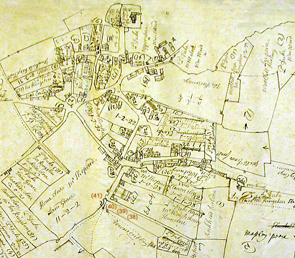 Click on a house number on the map or on the list to the left to read the history of the owners of that house