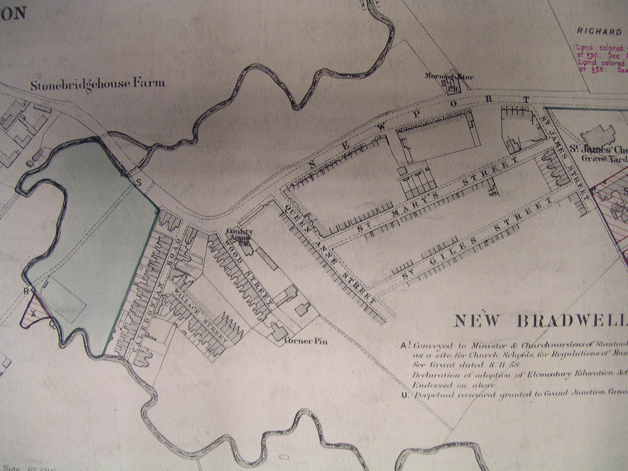 The annotations on the map refer to later development in the village. King Edward Street and Bounty Street were built at a later date.