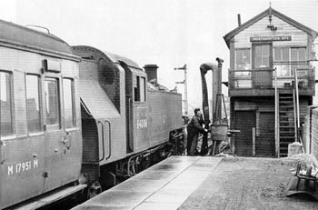 A turntable that could accommodate the large engines that pulled the goods trains was sited near to the signal box. It was operated by one man turning a handle to reverse the direction of the engine. A large tank on top of a brick tower stood near the turntable and supplied water for the engines. A number of allotments were provided for railway workers on the south side of the signal-box.