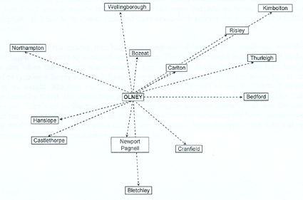 Sowman’s business covered a very large area. The sales ledgers were divided into East and West regions. The six ledgers for the East Region were looked after by Ruth Sharp (neé Perkins). These covered the area from Cold Brayfield to Kimbolton, including Cranfield, Thurleigh, Carlton and Riseley. Jean handled the six ledgers for the West Region. The first covered Weston, Ravenstone, Stoke Goldington, Tyringham, Gayhurst, Hanslope and Castlethorpe; the second covered Northampton and District; the third dealt with Bletchley and district; the fourth covered Yardley Hastings, Grendon, Easton Maudit, Bozeat; a fifth ledger addressed Emberton, Sherington and Newport Pagnell including Newport Pagnell Rural District Council. The Council lorries and vans used to come to Olney for petrol if they were in the area. The sixth ledger was a monthly ledger for Olney trades-people who were billed every month.