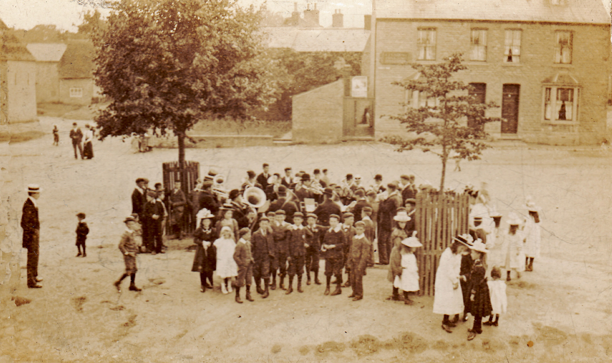 The photograph of Olney Silver Band was taken by George Lett in 1899. The band was preparing to play on the Knoll, probably on a Sunday, as everyone was turned out in their ‘Sunday best’ clothes.