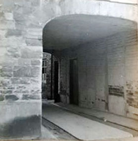 The second photograph, again taken from the High Street, shows a closer view of the archway and particularly the sheet metal tracks used to align a vehicle’s wheels when passing through the archway so as to avoid damage to the walls of the archway.