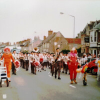An essential feature of the fiesta was a procession, usually lead through the town by a ‘carnival’ band, starting and ending at the recreation field in East street. The route taken by the procession in 1989 is shown in the sketch below.