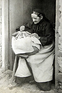 In earlier times the lacemakers would work in the lofts above cattle byres in winter. Heat generated by the bodies and breath of the animals stabled below would arise and help keep the workers warm.