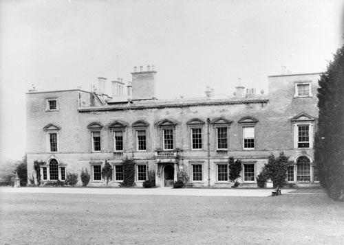 The two wings of the original 3-storey Elizabethan House are seen (albeit with modified windows), to the left & right of this picture. The Apex courtyard centre section was filled in by George Wright in the mid 18th century. This front is only two-storey and presents a Palladian style appearance: seven bays with simple central Doric porch with balustrade over. The first floor is in effect a tall “Piano Mobile” of sliding sash windows with alternating stone pediments above. A strong cornice line conceals a flat lead roof behind. The mid 18th century addition originally contained the dining room on the ground floor and the ballroom on the first floor.