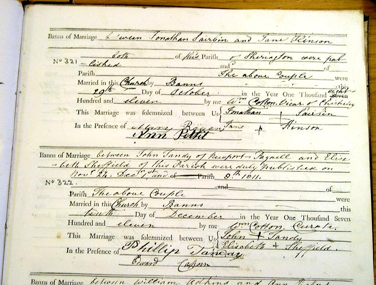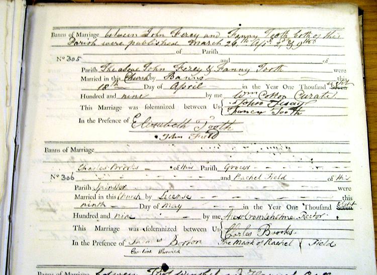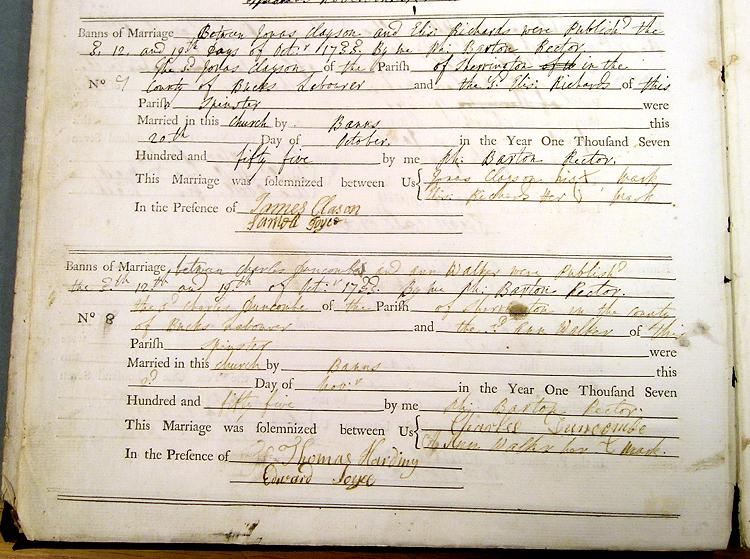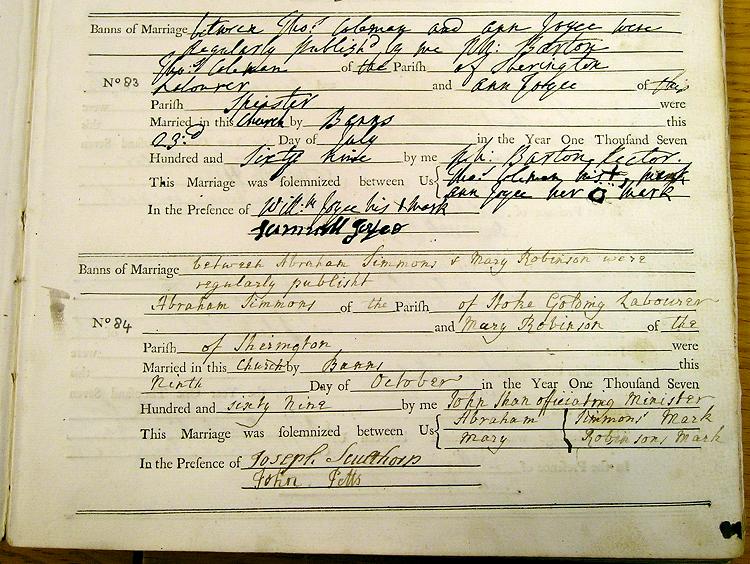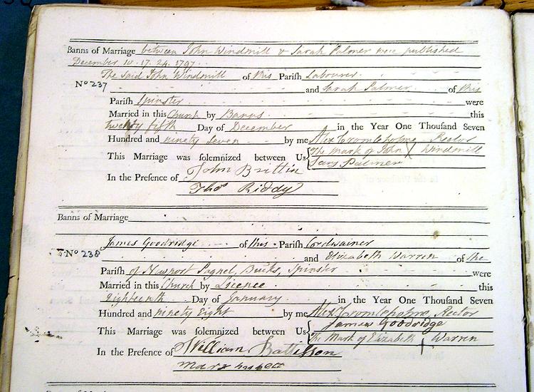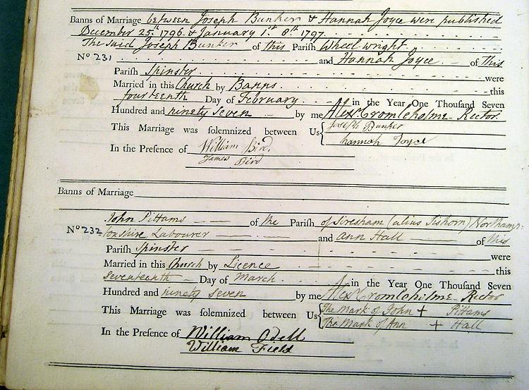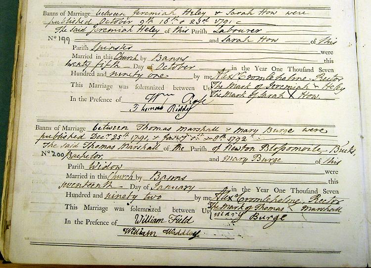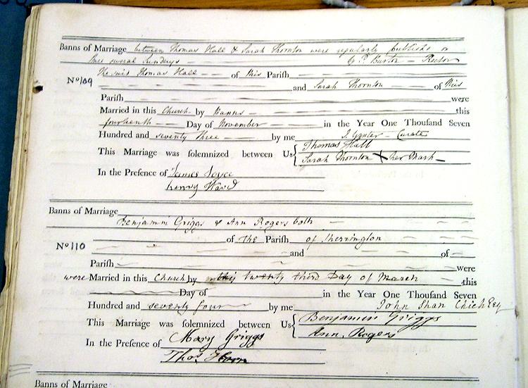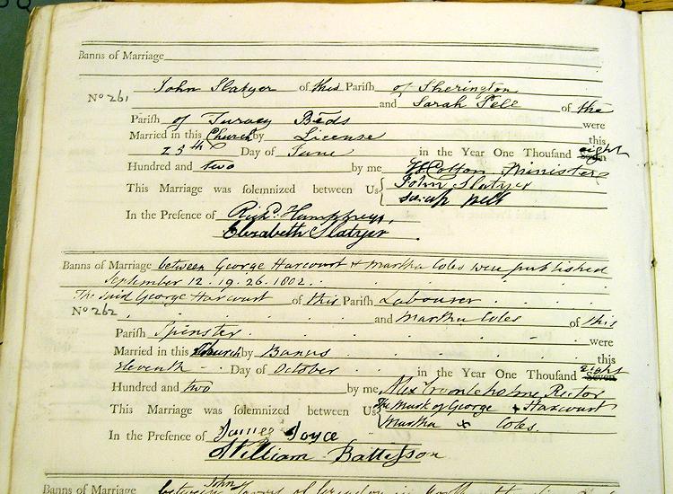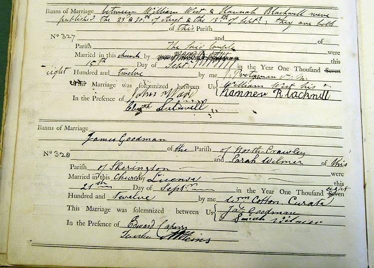 The St Laud’s Parochial Church Council has given Sherington Historical Society permission to take digital photographs of each page in all the Parish Registers, for use in family history research. However, entries less than 100 years old (i.e. after 1912) have not been copied.