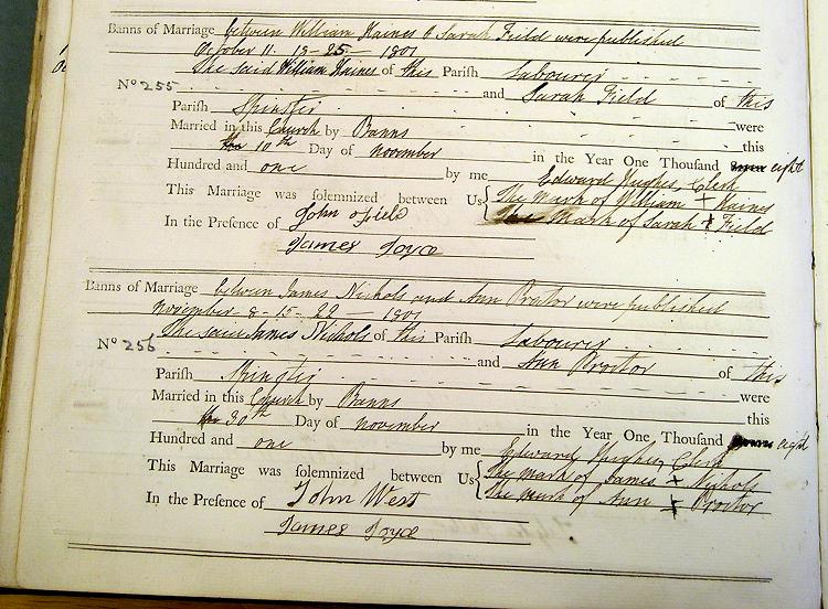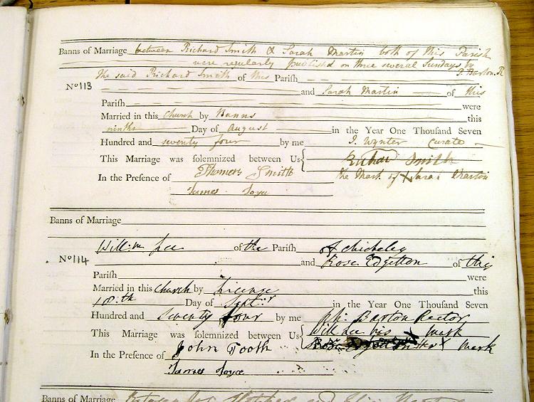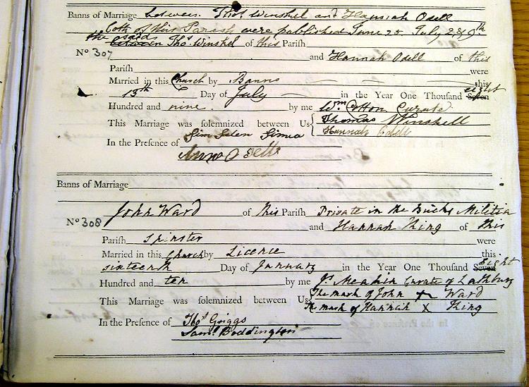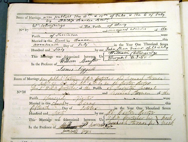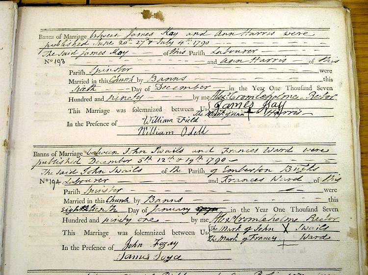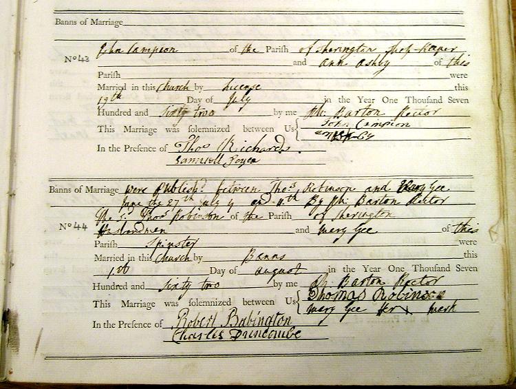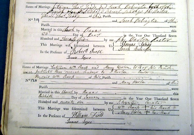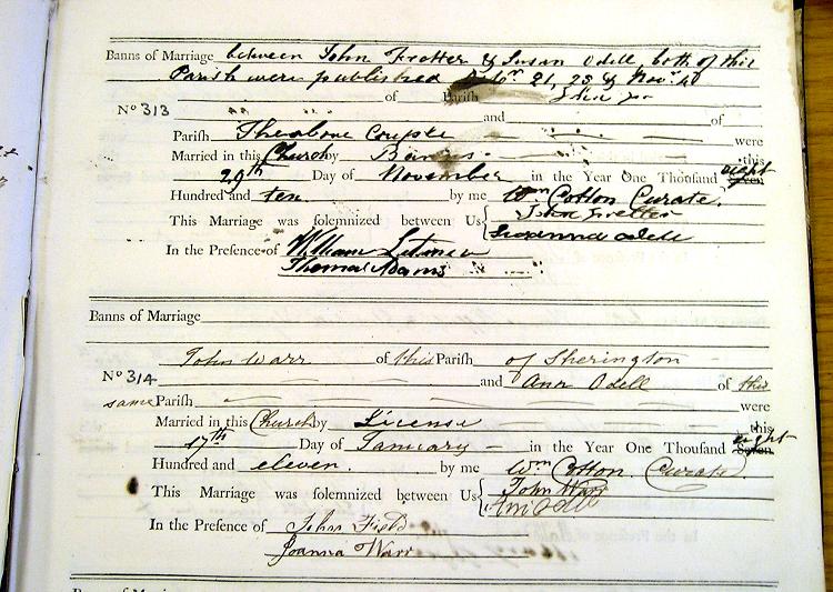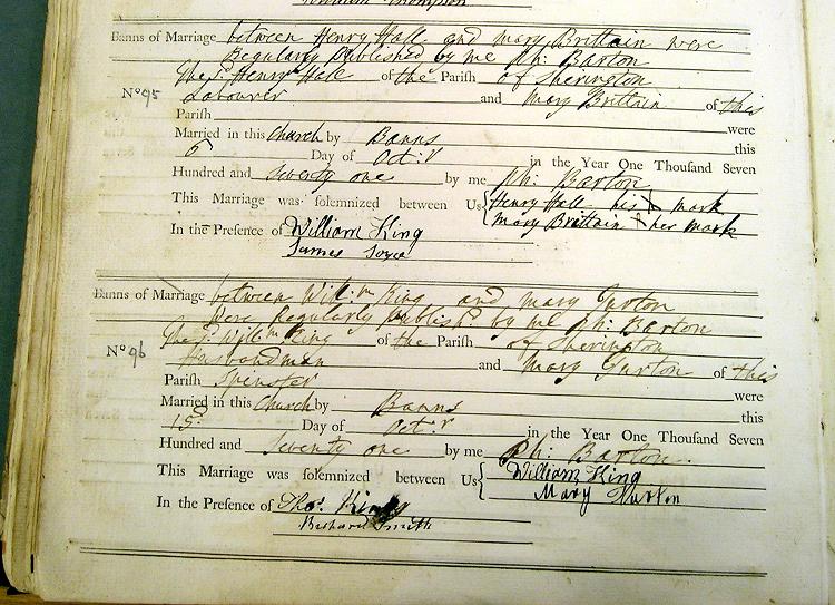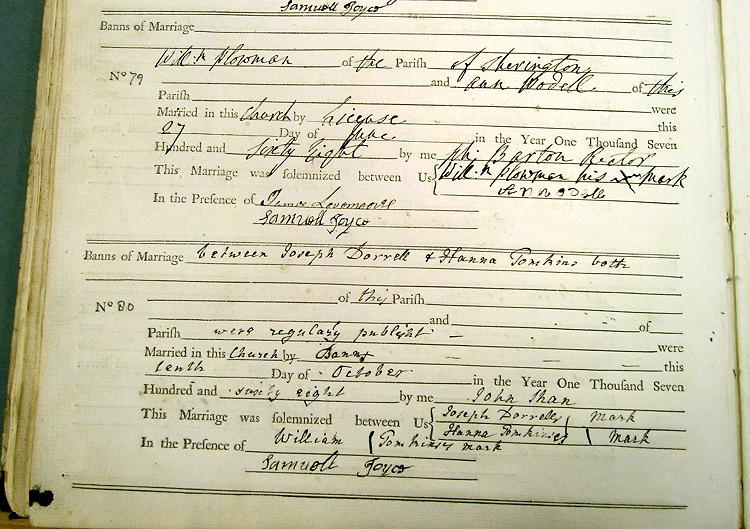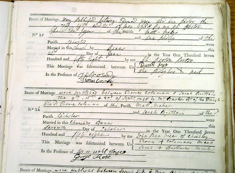 The St Laud’s Parochial Church Council has given Sherington Historical Society permission to take digital photographs of each page in all the Parish Registers, for use in family history research. However, entries less than 100 years old (i.e. after 1912) have not been copied.
